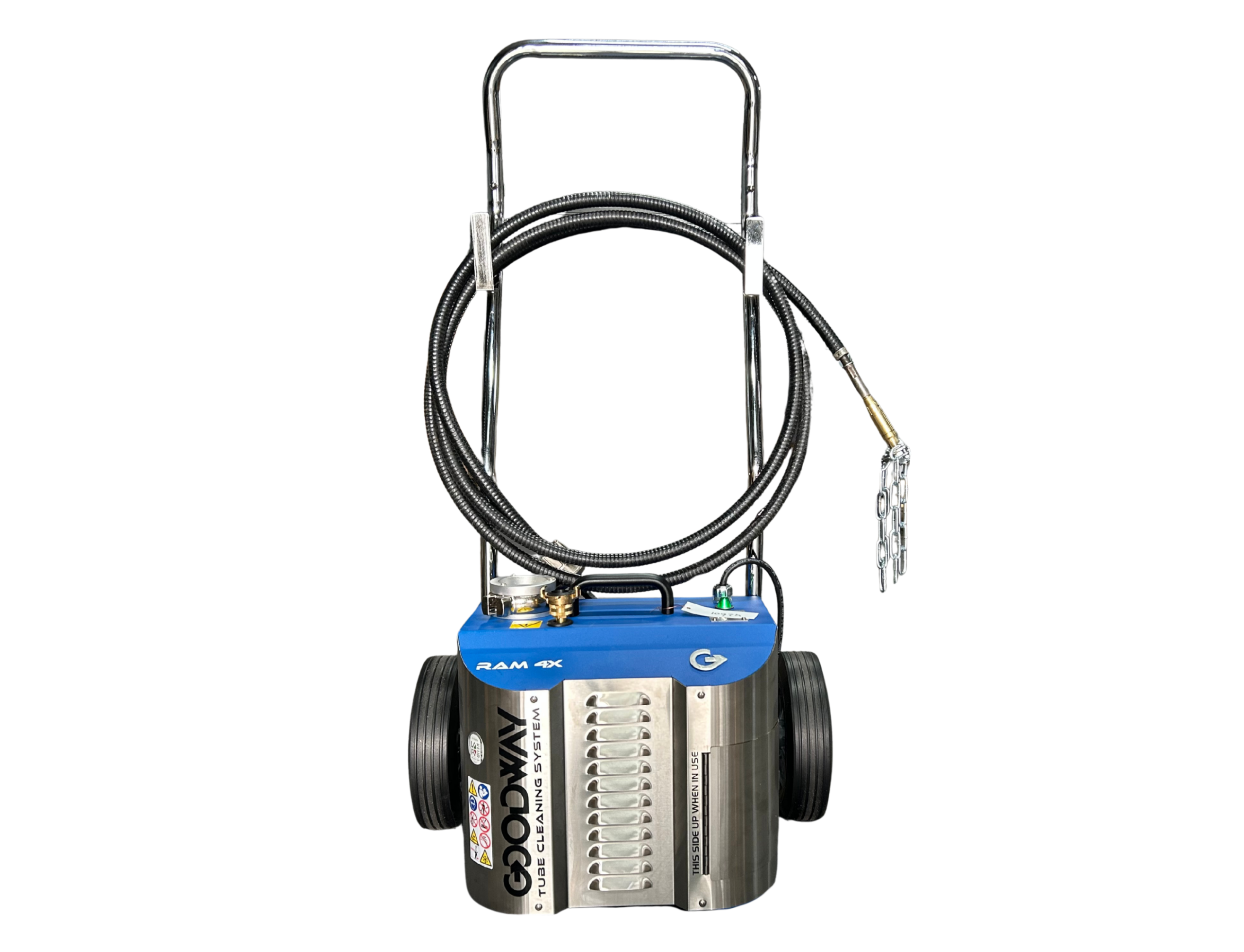 For the initial cleaning pass, Goodway Benelux recommends using chainsweepers, which are highly effective at removing hard deposit buildup and debris inside tubes.